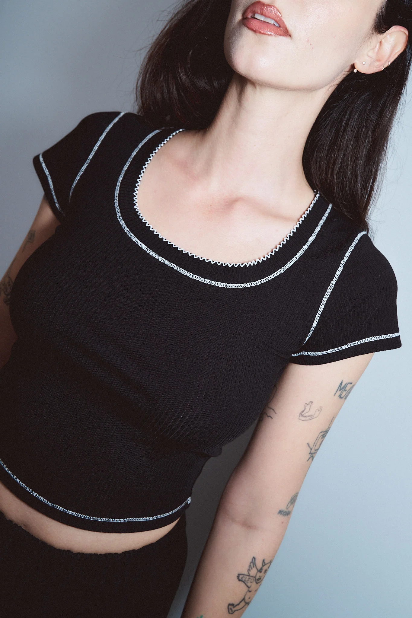 Scoop Tencel Rib Contrast Seam Baby Tee Black